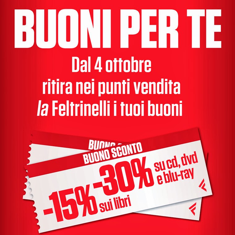 Vi segnaliamo l’iniziativa de La Feltrinelli “Buoni per te“, grazie alla quale potrete avere doppi buoni sconto per risparmiare sull’acquisto di libri e cd, dvd o blu-ray.